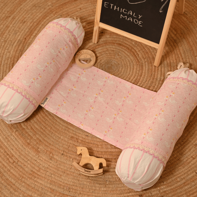 Ensure your baby’s safety and comfort with the Pink Swan Anti-Roll Side Pillow from Aangan,...