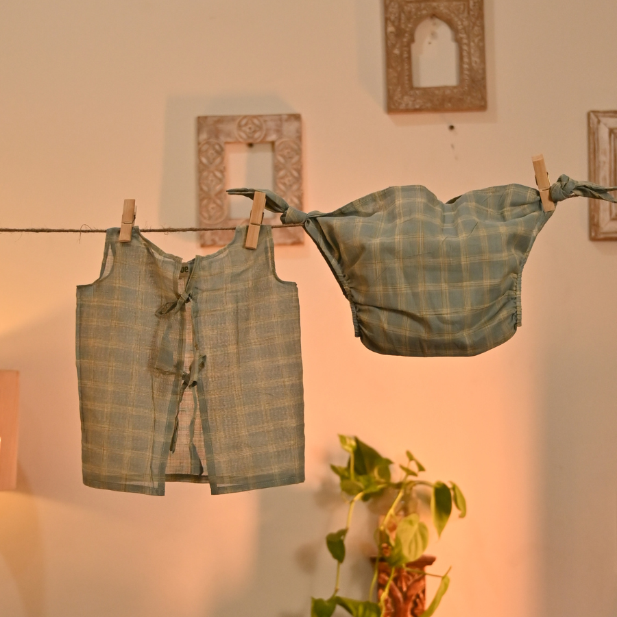 Soft checks, airy cotton, and everyday comfort—made for your baby’s earliest days.The Hara Checks Jhabla...