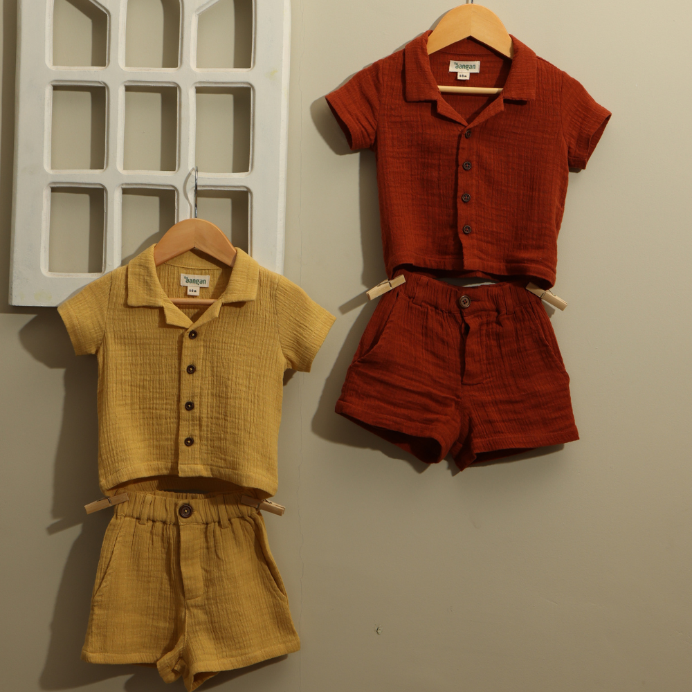 Introduce your little one to comfort and style with the Rust Radiance Organic Muslin Co-ord...