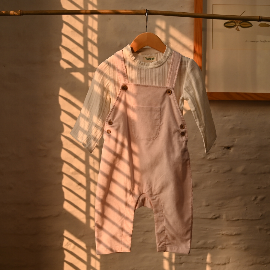 Let your baby bloom in the gentle charm of Aangan’s Pink Corduroy Dungaree Set, part...