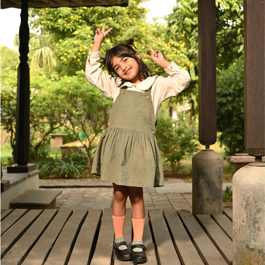 Wrap your little one in the charm of nature with Aangan’s Green Corduroy Dungaree Set,...