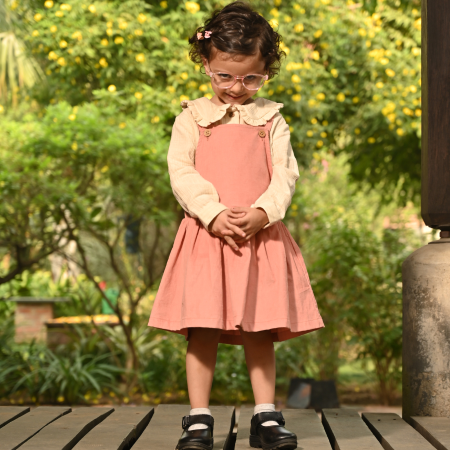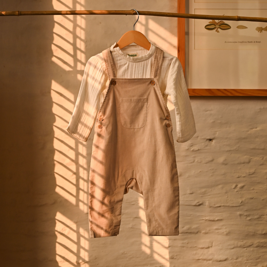 Introduce your little one to the timeless elegance of Aangan’s Beige Corduroy Dungaree Set, part...
