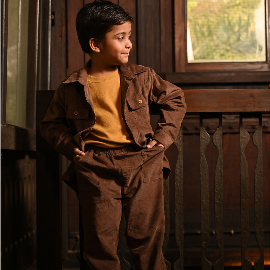 Introduce a touch of classic elegance to your child’s wardrobe with Aangan’s Brown Corduroy Shacket...
