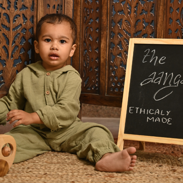 Keep your little one cozy and stylish with Aangan’s Olive Green Organic Muslin Co-ord Set,...