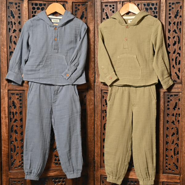 Olive Green Muslin Co-ord Set – Hoodie & Joggers (6 Months to 7 Years)