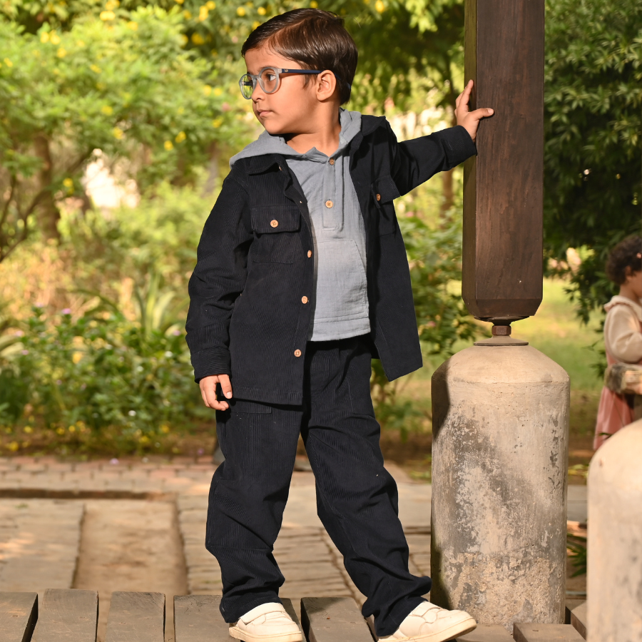 Dress your little one in effortless style with Aangan’s Blue Corduroy Shacket Set, part of...