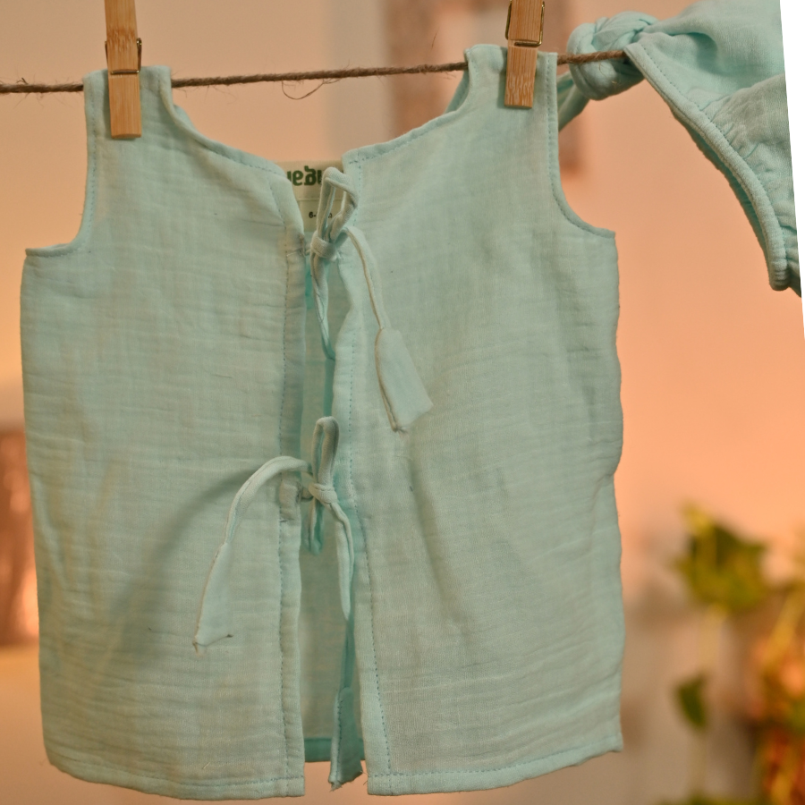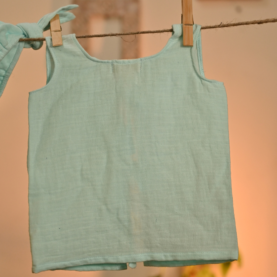 The Aasmani Jhabla Set is crafted from 100% cotton, designed to keep your baby cool, comfortable, and wrapped in everyday softness.