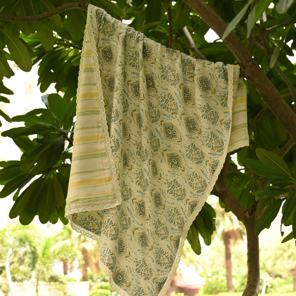 Organic Muslin Baby Dohar - Green Boota Print (0-12M)