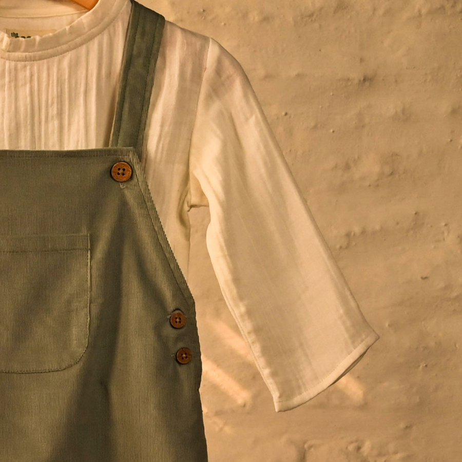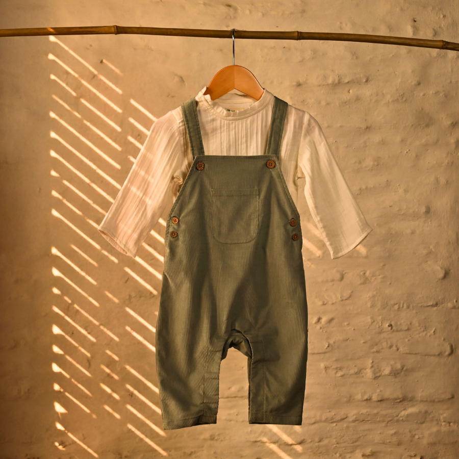 Wrap your little one in the charm of nature with Aangan’s Green Corduroy Dungaree Set, a part of our Saundh - Nayi Kahani collection. This set is perfect for babies aged 0 to 24 months, combining the warmth of lightweight corduroy with the softness of an organic muslin cotton top. The fresh green hue embodies the spirit of adventure while keeping your baby comfortable and cozy.