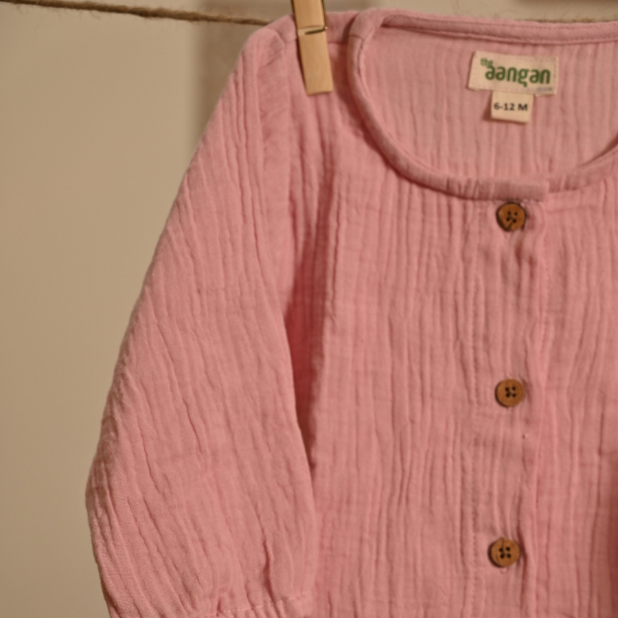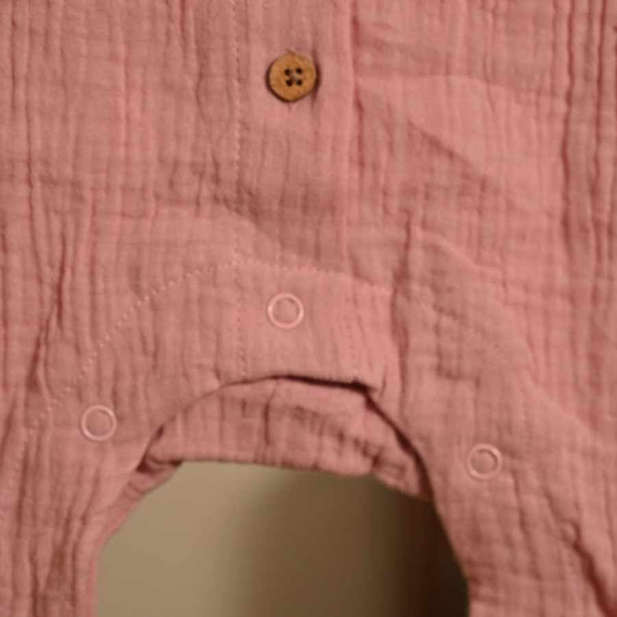 The Gulabi Shaam Romper is crafted from 100% double-gauge muslin cotton, making it exceptionally breathable, airy, and kind to your baby’s delicate skin.