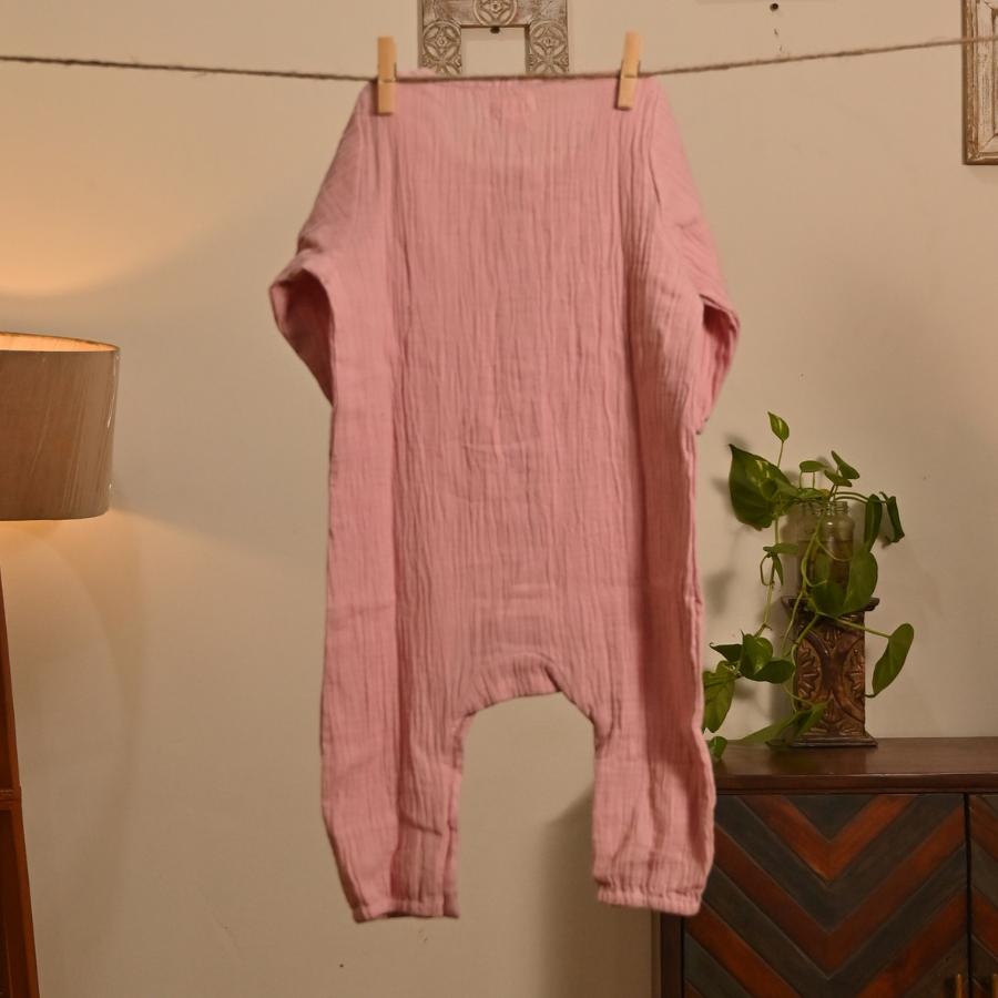 Gulabi Shaam Romper - Organic Muslin Full Sleeve (0–12M, Unisex)