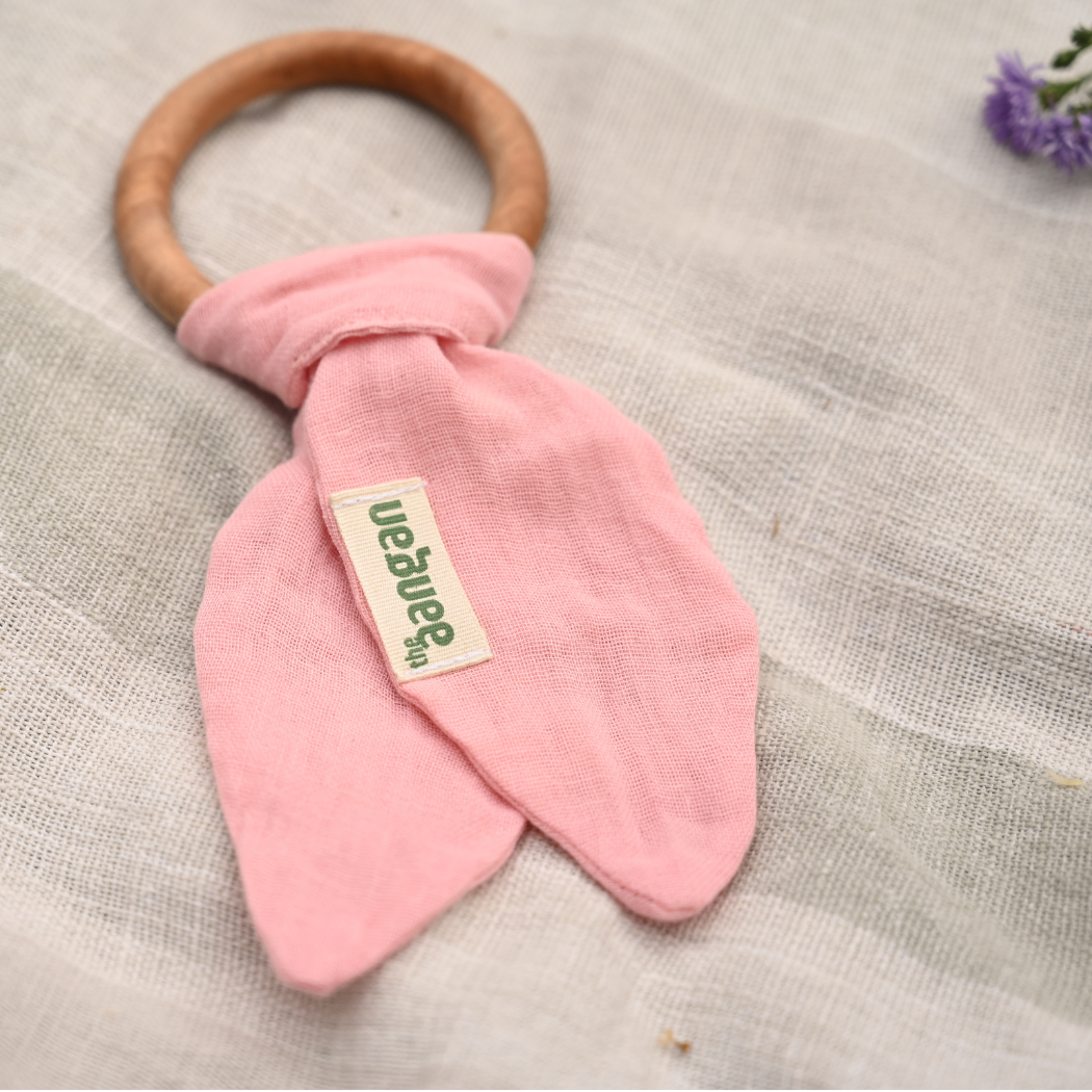 Gulab Kulfi Newborn Set – Pink (Teether Ring, Burp Cloth, Wash Cloth)