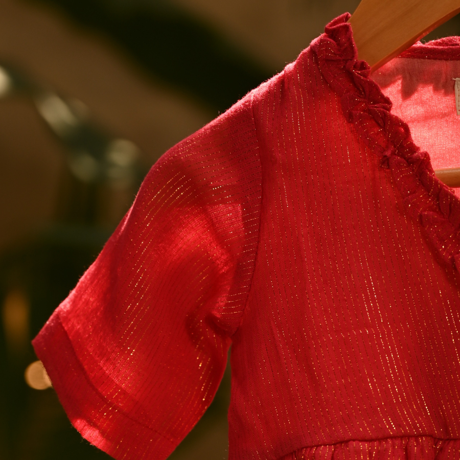 Gulal Red Cotton Frock – Baby Girl Festive Dress (0–12M)