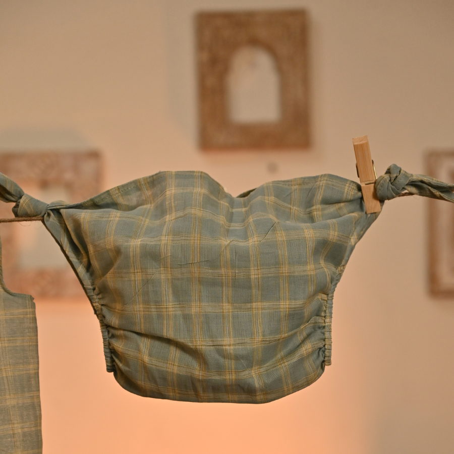The Hara Checks Jhabla Set is crafted from light, breathable cotton, perfect for keeping newborns cool, comfortable, and at ease.