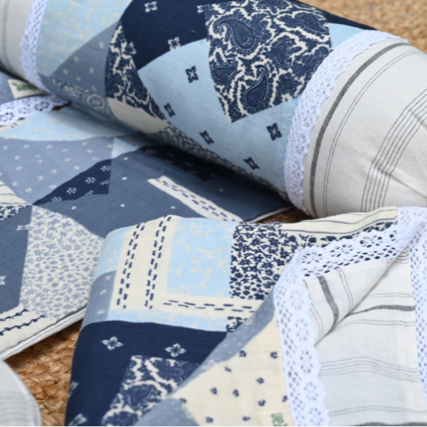 Whether it’s for quiet naps, festival mornings, or sweet first milestones, the Indigo Patchwork Sleep Set brings together heritage and functionality—one stitch, one smile, one dream at a time. 🪡💙