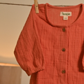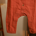 The Kesari Romper is crafted from 100% double-gauge muslin cotton, designed to keep your baby comfortable, breathable, and at ease through long days and peaceful naps.