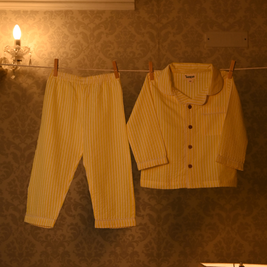 Inspired by the soft glow of laalten (lantern) lighting up childhood rooms, this night suit brings back memories of hushed stories, fireflies at the window, and the warm comfort of home.