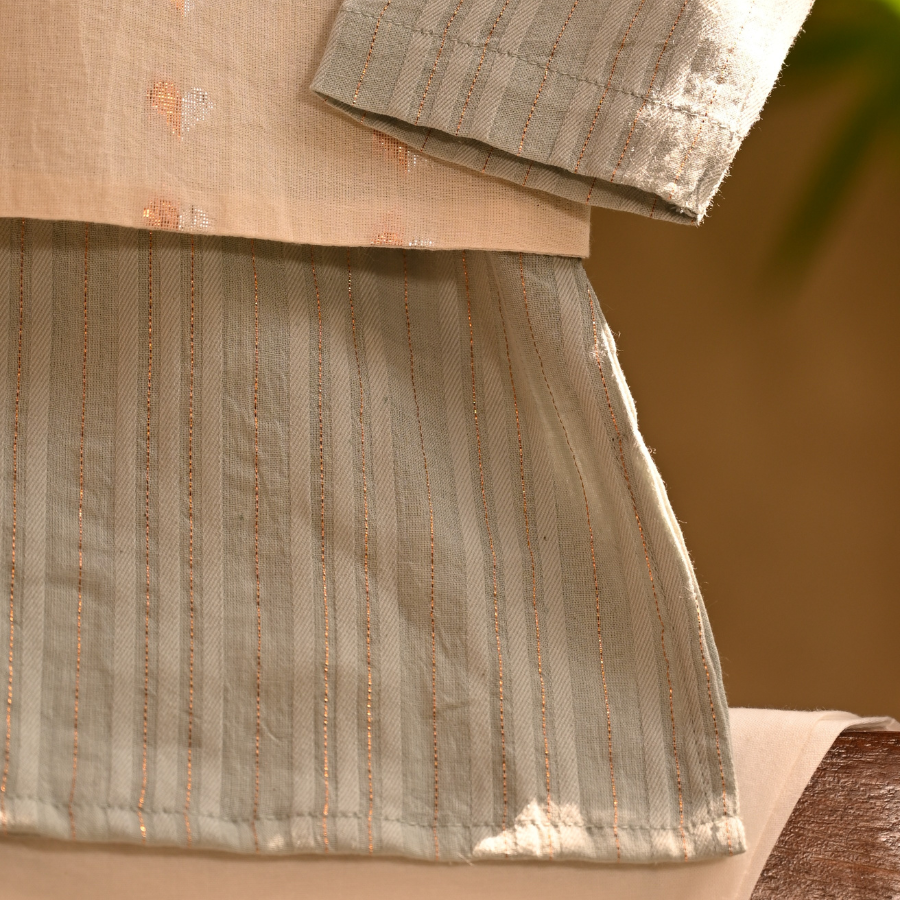 Add elegance to every celebration with our Mint Green Kurta Bandi Set, paired with a cream embroidered bandi jacket for a royal festive look. Made in 100% breathable cotton, this outfit ensures complete comfort with no itch, baby-safe fabric. A versatile choice for weddings, rakhi, and Diwali festivities, available in 0 months to 7 years.