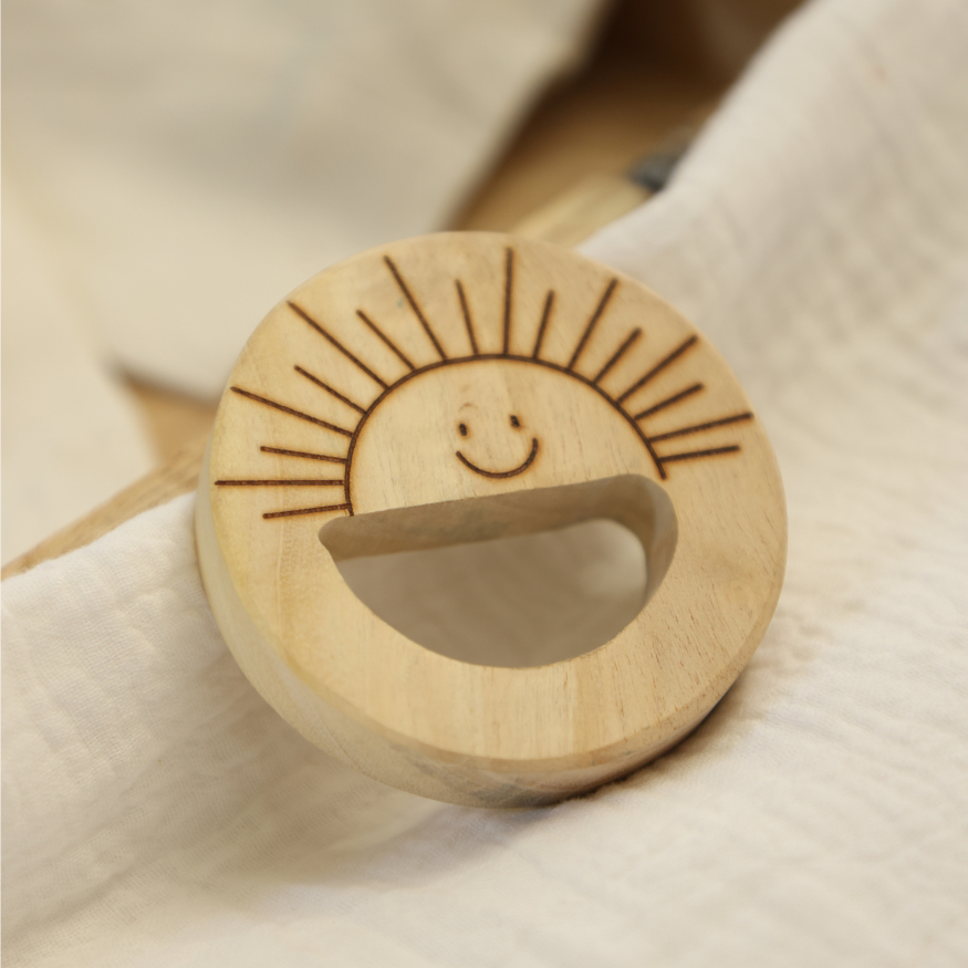 The smooth, natural finish of the moon-shaped teether is gentle on your baby's delicate gums. Its lightweight and ergonomic design make it easy for little hands to grasp and hold, promoting fine motor skills and hand-eye coordination. The neem wood's natural properties also provide antibacterial benefits, ensuring a safe and hygienic teething experience.