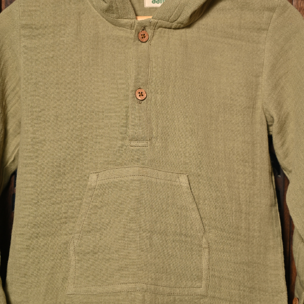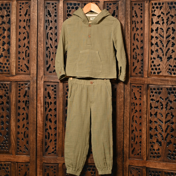 Olive Green Muslin Co-ord Set – Hoodie & Joggers (6 Months to 7 Years)
