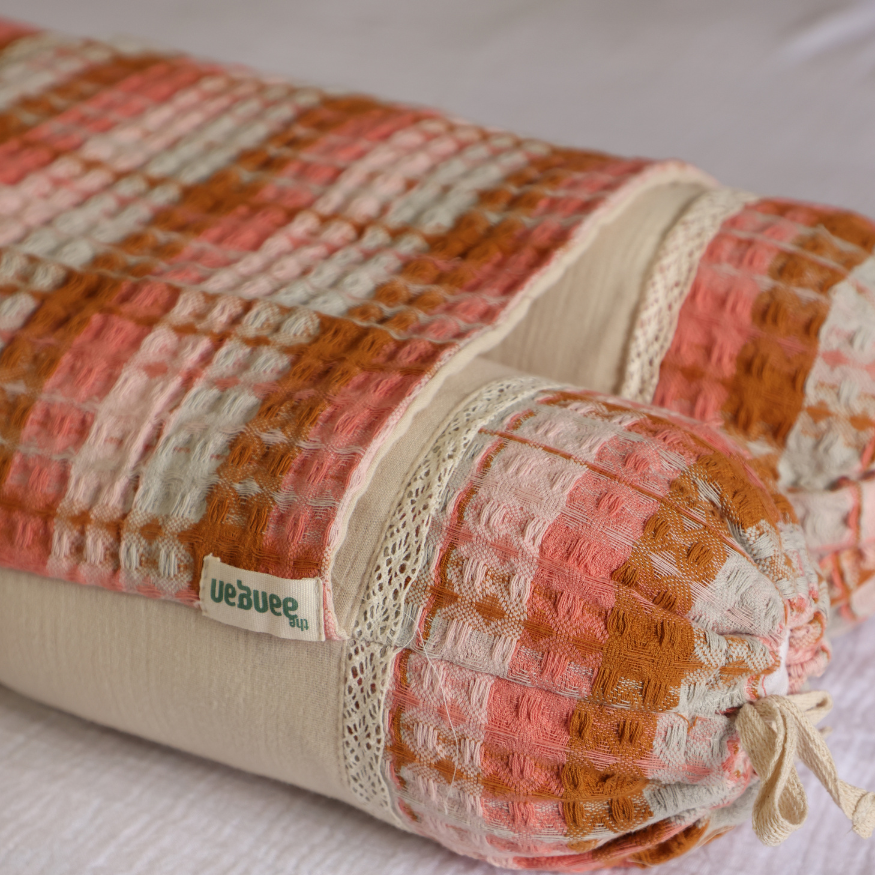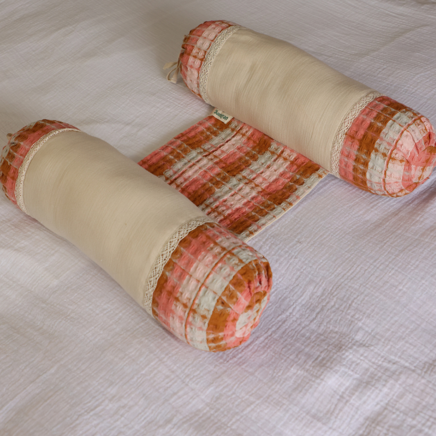 Ensure your baby sleeps safely and soundly with the Organic Cotton Anti-Roll Side Pillow in Pink from Aangan – where comfort meets protection, naturally.