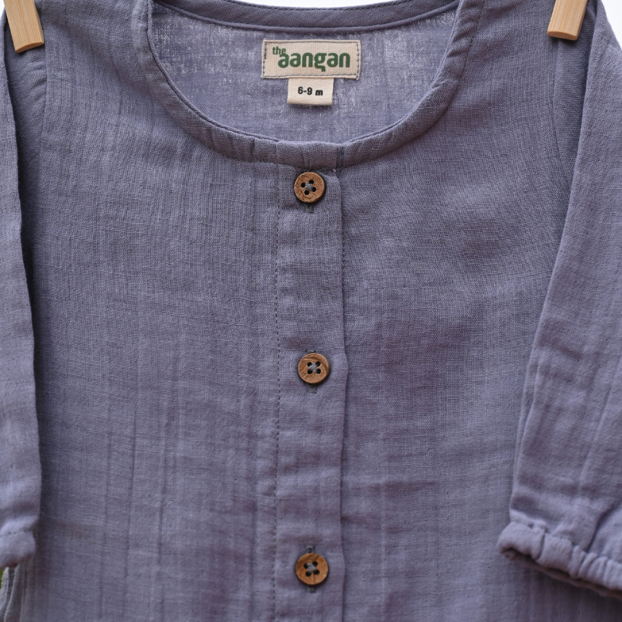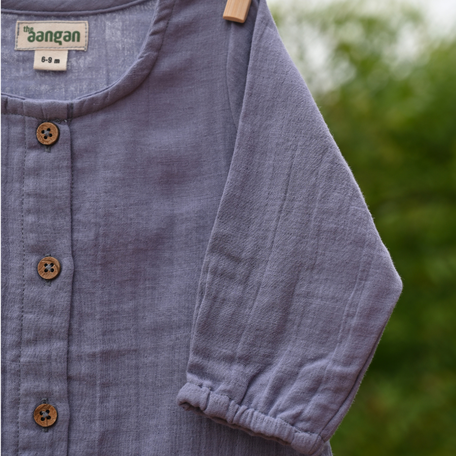 Organic Cotton Muslin Romper – Garha Neel Unisex (0–12M)