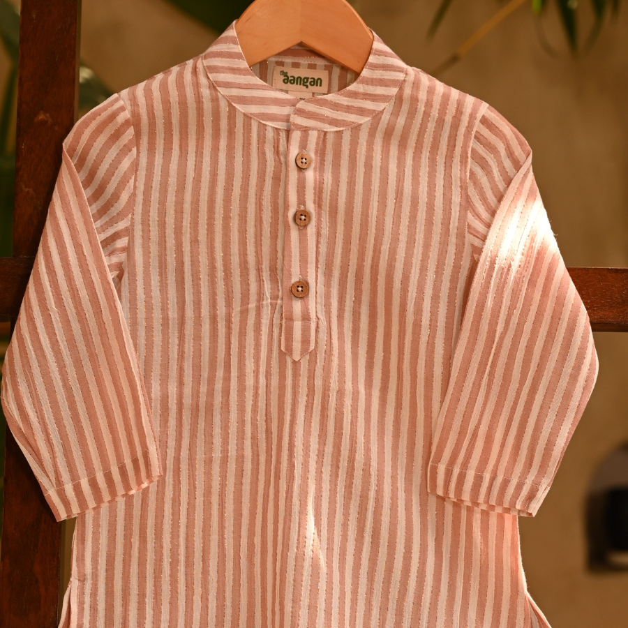 Peach Stripes Kurta Pajama Set – 100% Cotton Ethnic Wear for Boys (0M–7Y)