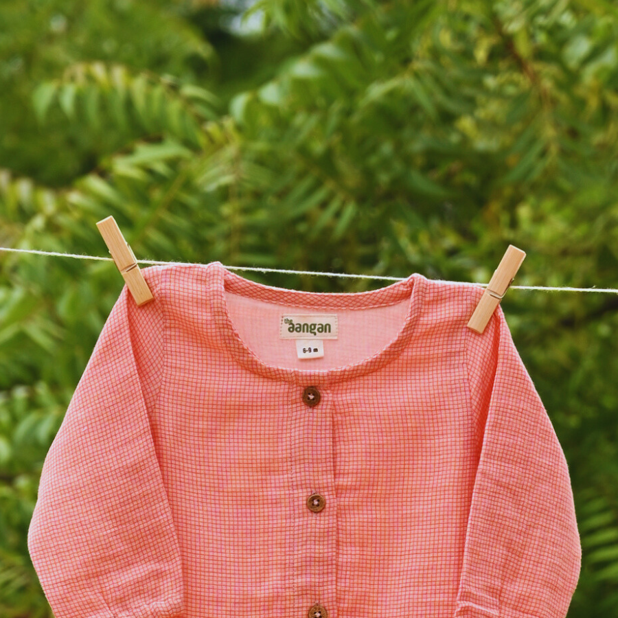 Aangan’s Red Check Romper is a soft embrace stitched in timeless charm. Inspired by the nostalgia of childhood summers and picnic blankets in nani’s courtyard, this romper blends heritage patterns with everyday ease. Crafted from 100% pure cotton muslin, it’s breathable, gentle on delicate skin, and perfect for all seasons.