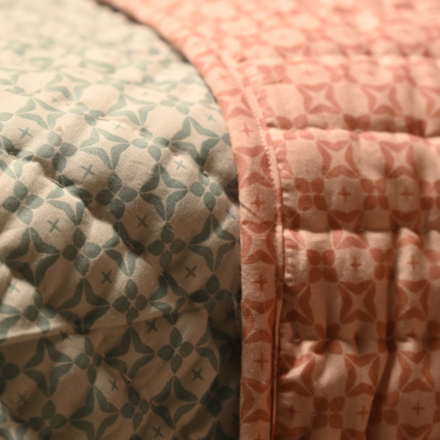 Hand Stitched Reversible AC Comforter – Green & Peach Floral Motifs