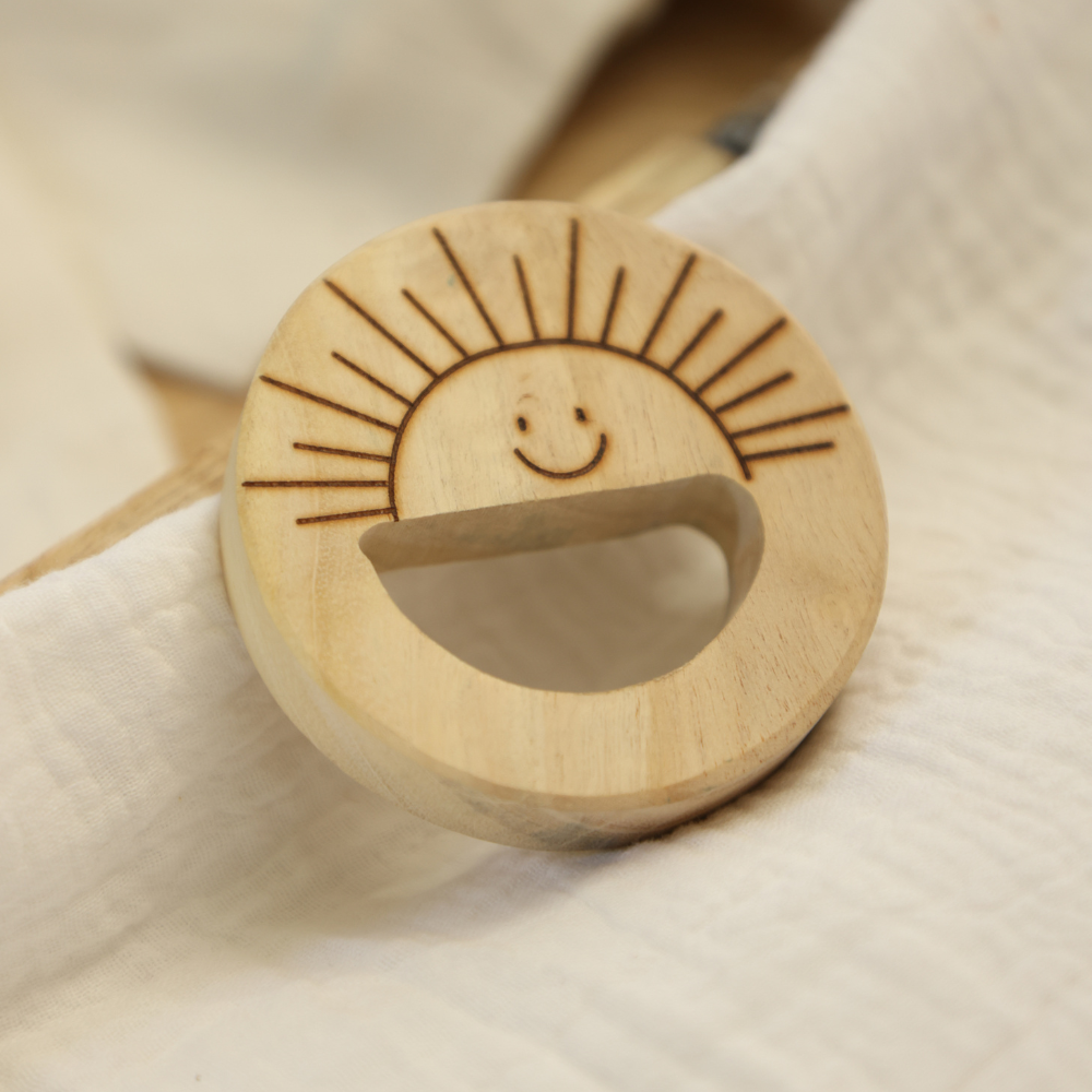 - A sun-shaped teether designed to soothe your baby's gums, providing relief during teething.