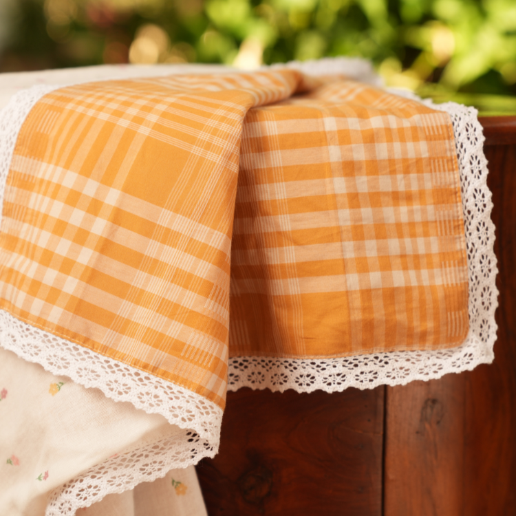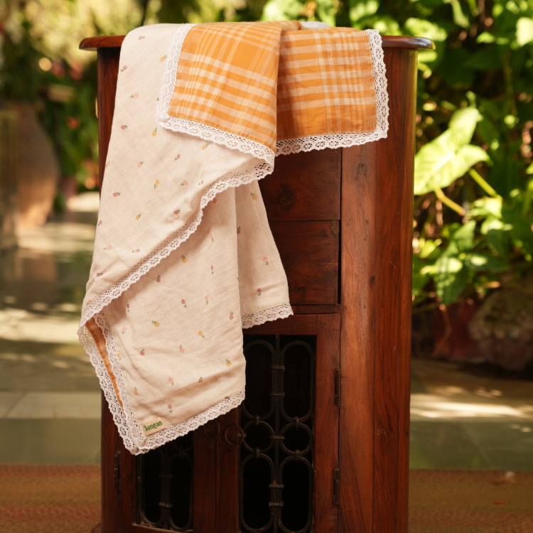 Small Flower Print with Mustard Checks Dohar
