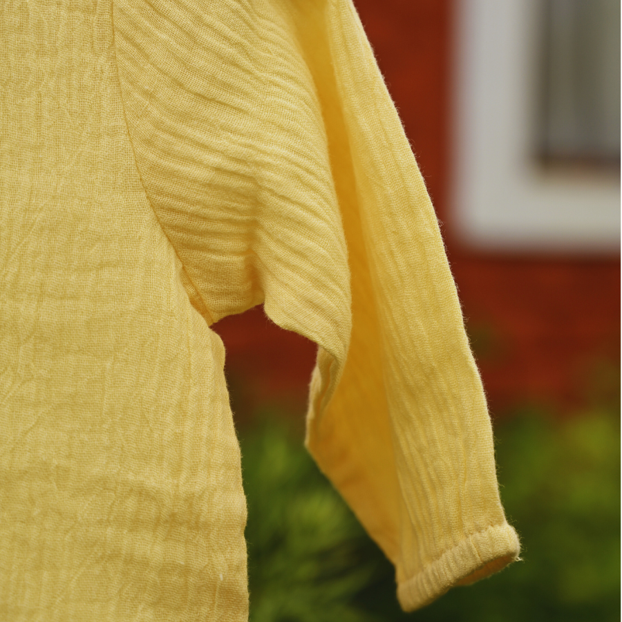 Organic Muslin Romper – Sunehri Dhoop Full Sleeve (0–12M, Unisex)